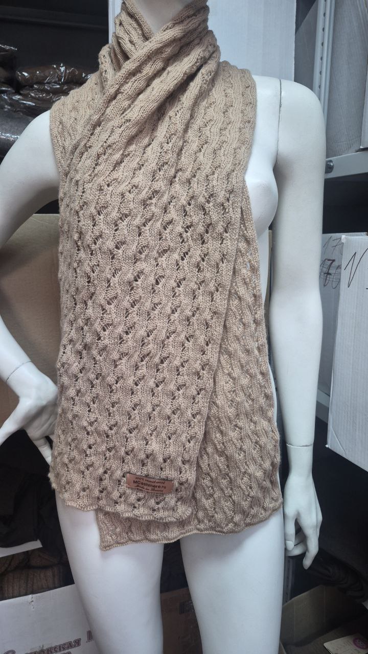 Ажурный шарфик из шелковистого монгольского 100%-ного пуха яка. С таким шарфиком Вы не замёрзнете в любой мороз. Подойдет и как модный аксессуар, при этом, в отличии от шарфов из смесей акрила с овечьей шерстью, наш шарф не будет давить весом на плечи и грудь. Он – легок, приятен в прикосновении, его приятно брать в руки!